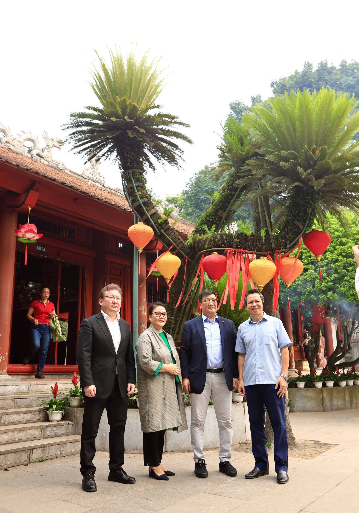 Đại sứ Mông Cổ và phu nhân dưới tán cây vạn tuế 800 tuổi ở Khu di tích Đền Hùng